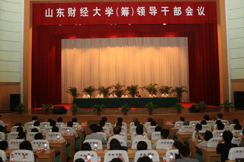 今天上午,山东财经大学(筹)领导干部会议在南郊宾馆俱乐部礼堂召开,标志着山东经济学院和山东财政学院合并筹建山东财经大学工作全面正式启动。会议由省委高校工委书记、教育厅厅长齐涛主持,副省长黄胜出席会议并讲话。
