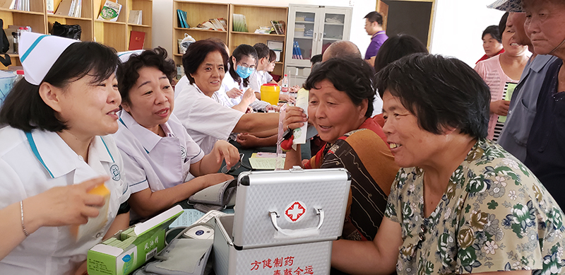 6月28日-29日,舜耕校区校医院积极响应校党委号召,由舜耕校区校医院院长刘丽波带队,组织党员医务人员一行12人,赴我校“第一书记”帮扶村鄄城县左营乡杨台村,开展“送医下乡扶贫”义诊活动。测血压、测血糖、心电图、中医理疗、医疗咨询……每个义诊小组桌前都排满了长队。酷暑炎热,义诊队员们个个汗流浃背,但大家的热情很高,干劲不减。义诊队共接受村民医疗咨询、开处方近200人次,为约160人测血压、血糖,中医理疗50余人次,做心电图82人次,发放健康保健宣传材料约600份。义诊队不仅为村民们带去了现场诊疗,还为我校“第一书记”高峰、杨杰、谷学峰和李斌帮扶村村委会赠送了保健药箱、防暑药、体温计等,以实际行动为党的生日献礼,为建设美丽乡村和乡村振兴战略贡献力量。