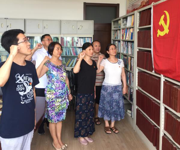 6月29日上午,统计学院计量经济系党支部党员在学院资料室举行“不忘初心,牢记使命”宣誓活动。全体党员重温入党誓词,接受了一次党性教育,进一步增强了党员使命感、责任感和荣誉感。